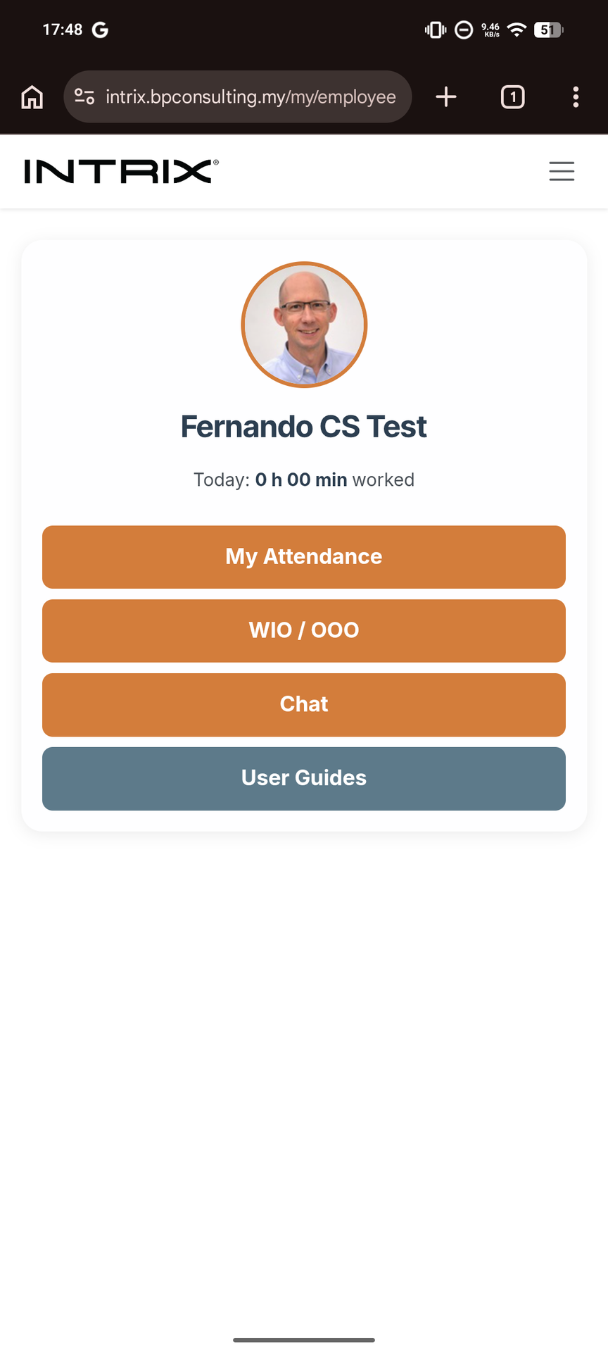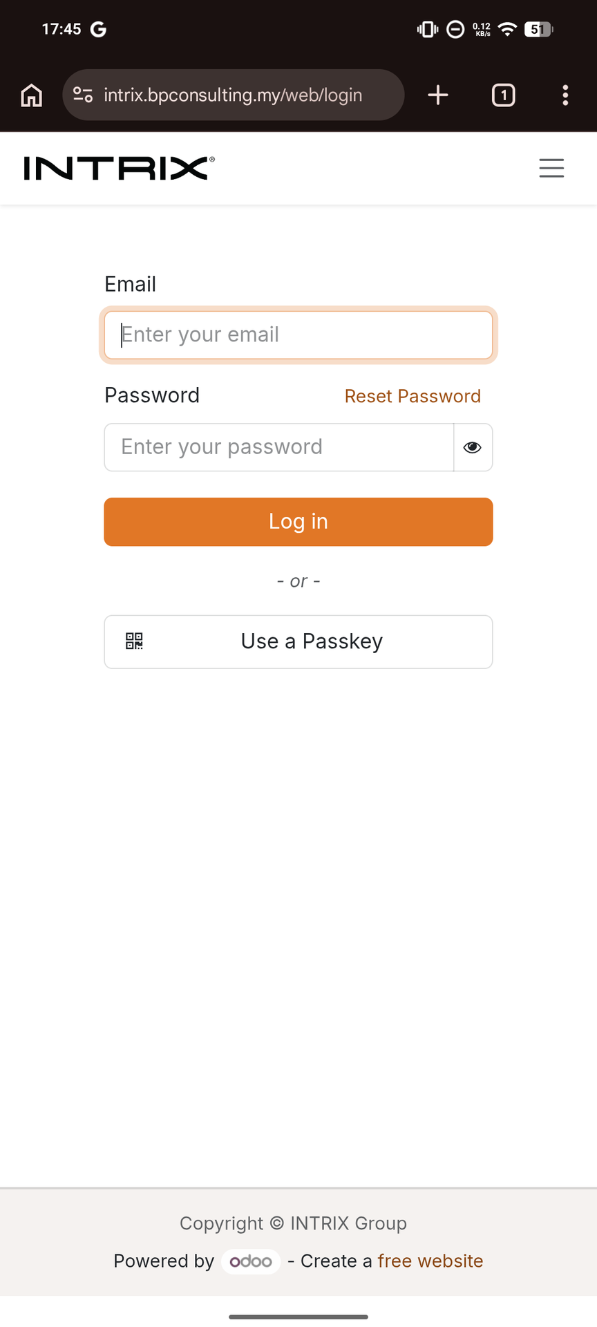 The Employee Self Service (ESS) Portal is your personal workspace within INTRIX's system. From your phone or tablet, you can check in and out, view your attendance records, request time off, chat with your team, and access the Employee Handbook — all without needing an Odoo licence.