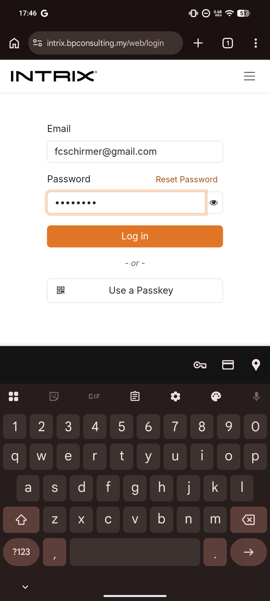 You will see the INTRIX login screen. Enter your work email address and your password, then tap Log In.